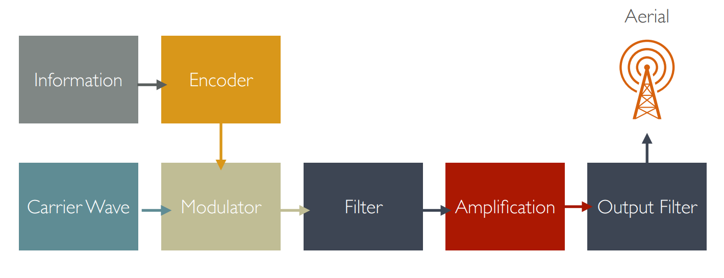 This is where we boost the signal so as to for it able to be received by the other side, this does however introduce noise which is why we have:
