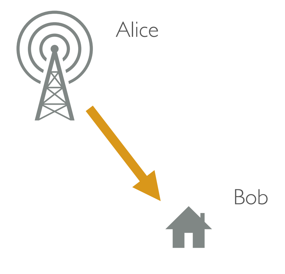 Downlink or “Downloading” more colloquially known is the act of transmitting information from a Transmitter (Alice) to a receiver (Bob)