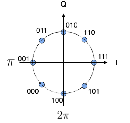 As implied by the name, this is the same as PSK, but now with the Quadrature axis being utilized, essentially giving us binary options on both the axis as well as the axis, giving 4 bit options, or 2 bits per symbol