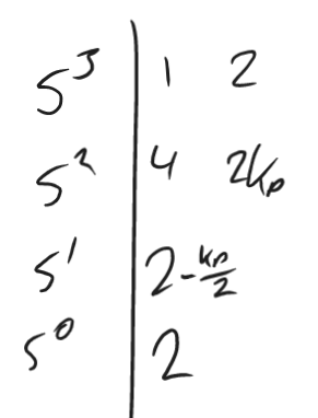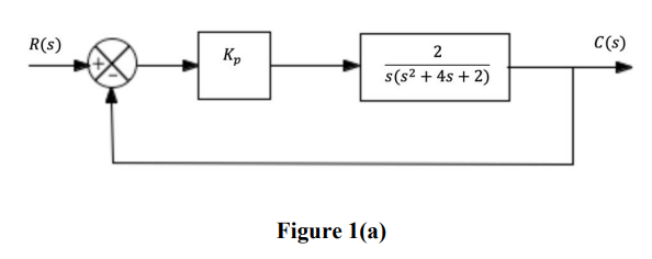 Figure 1(a) shows a unit feedback control system consisting of a proportional controller and a third-order plant. Find the range of proportional gain for which this system is stable. (5)