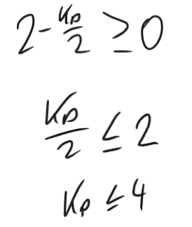 \begin{align} \\ \frac{h(s)}{h_r(s)} &= \frac{K_ds+K_p}{s^2+K_ds+K_p} \\ K_d&=2\xi\omega_n , \quad K_p =\omega_n^2 \\ \xi &= \frac{K_d}{2\sqrt{K_p}} \\ \text{No }&\text{Oscillations at }\xi\geq1 \\ \rightarrow&\quad \frac{K_d}{2\sqrt{K_p}}\geq1 \\ \Rightarrow& \quad K_d \geq2\sqrt{K_p} \end{align}