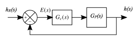 The vertical motion of a service lift is controlled by means of lifting cables. The desired position is given by and the actual position is given by ℎ(𝑠). The error between actual and desired position is amplified and used to actuate the lifting cables. The actual position is measured and fed back by a sensor which has unity gain. and are the transfer functions of the controller and plant respectively.