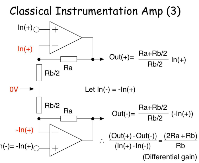 Derive Gain for 3 Op Amp Instrumental Amp