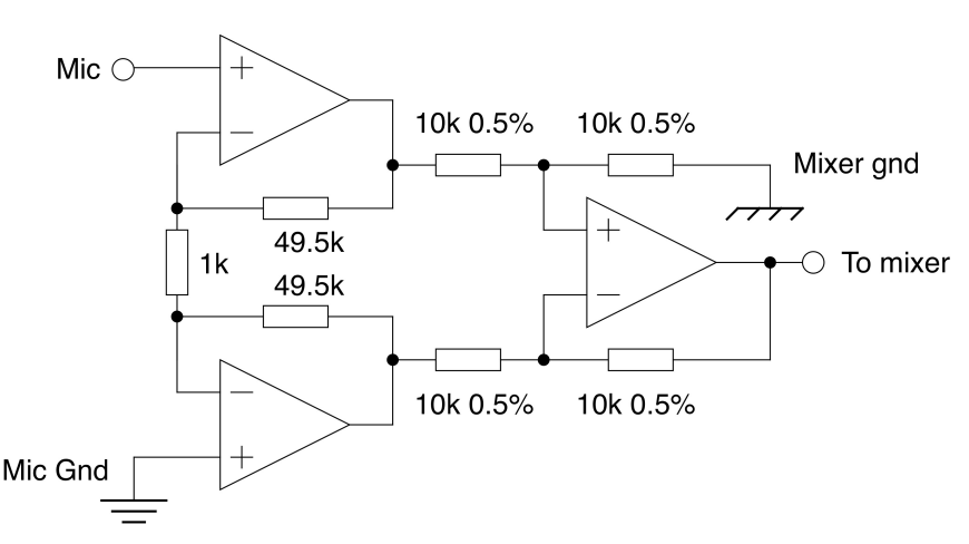 In this example, the added amplitude of the signal (1V) is 10 times larger than the differential peak. So if we had a CMRR of 10, our signal would be at most the same amplitude of the 50Hz noise So So say we wanted the microphone signal to be 1000 times larger than the 50Hz, we need a CMRR of 10000 (80dB), and if we want a 10V output from this, we would need So: So our O/P CMRR will be So our O/P resistor tolerance shall be so the tolerance % is Given , and let