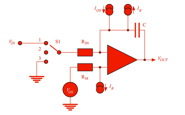 All of the errors we are calculating for are in the blue section of this circuit, as the gain is 100x the rest of the circuit and therefore so is the error