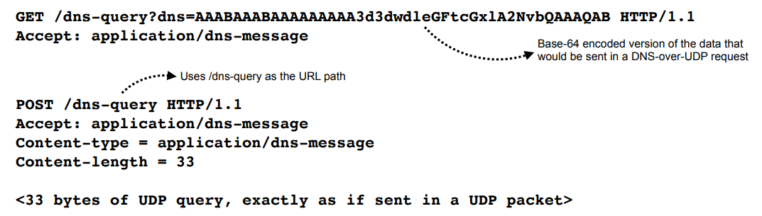 application/dns-messageand contains the exact same data that would be sent in a UDP-based DNS response