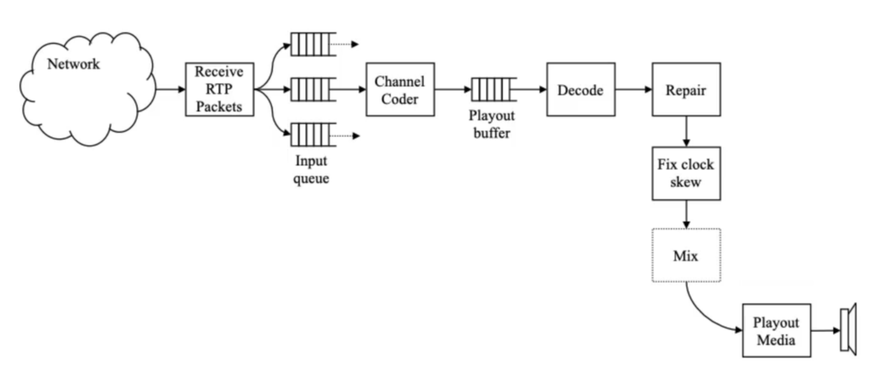 - Playout buffer used to reconstruct order, smooth timing
