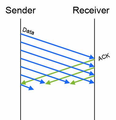 Each returning acknowledgement for new data slides the window along, releasing next packet for transmission → if window sized correctly, each acknowledgement arrives just in time to release next packet This means that ideally just as/ just after the last packet comes in, the acknowledgement for the first packet comes in.