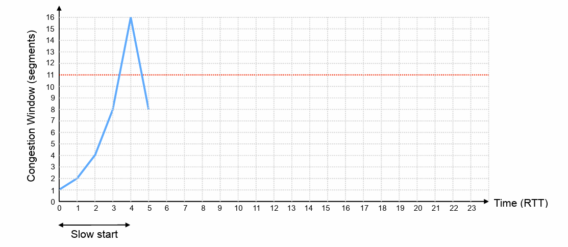 - = 10 packets per RTT - Modern TCP implementations [RFC 6928]
