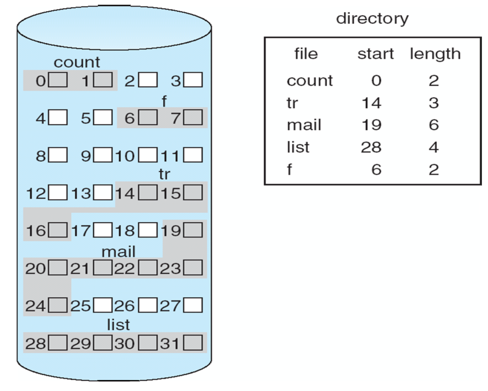 - Simple - Only starting location (i.e. block #) and length (number of blocks) are required
