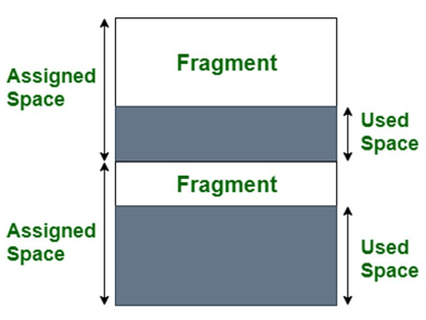 This means that there is free memory belonging to one process that cant be assigned to other processes which causes wasted memory: