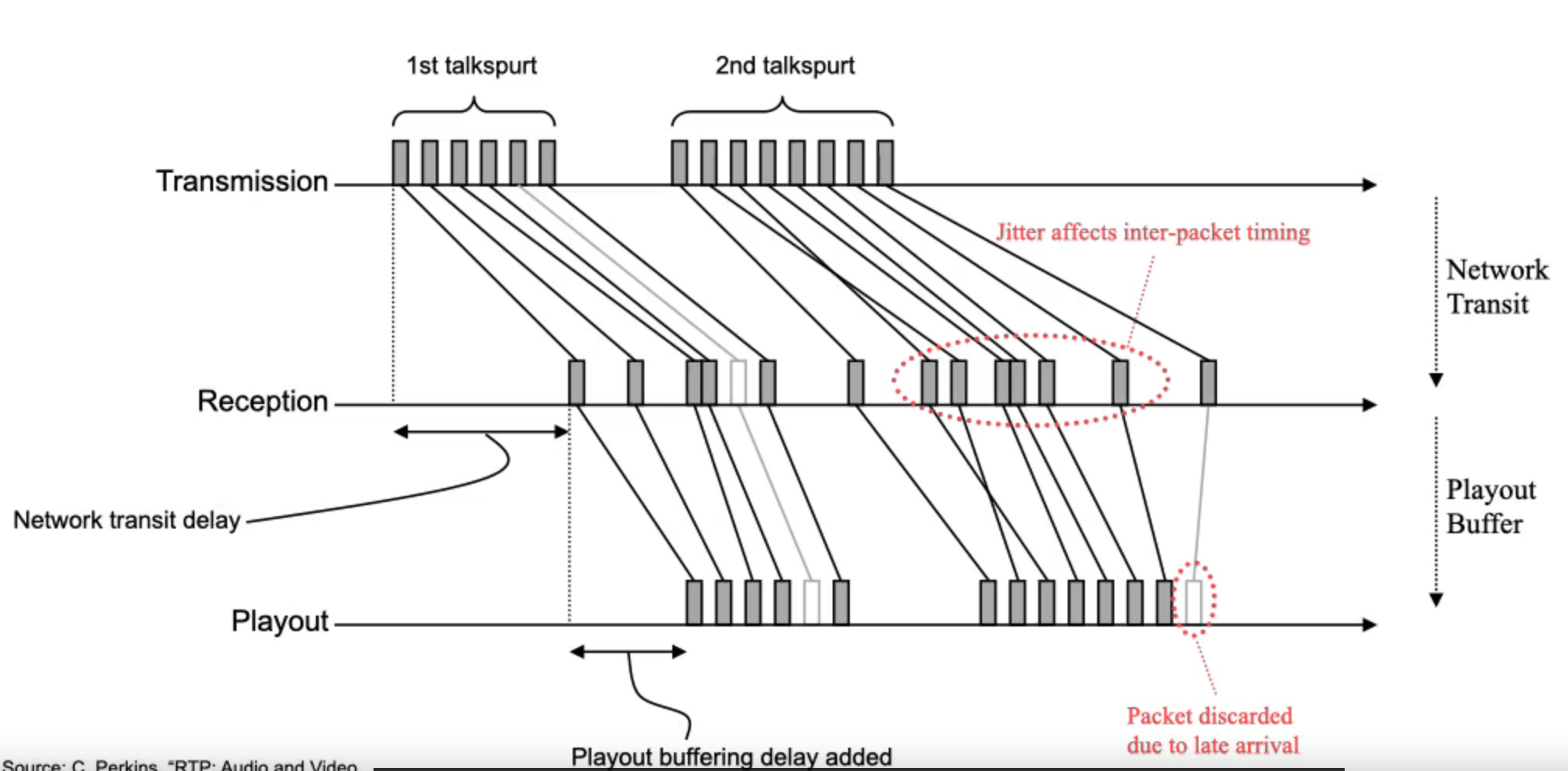 Unfortunately due to the nature of the internet, we cannot guarantee the order, and spacing of the packets being sent to be identical to what is received, and we have to account for this, especially in media.