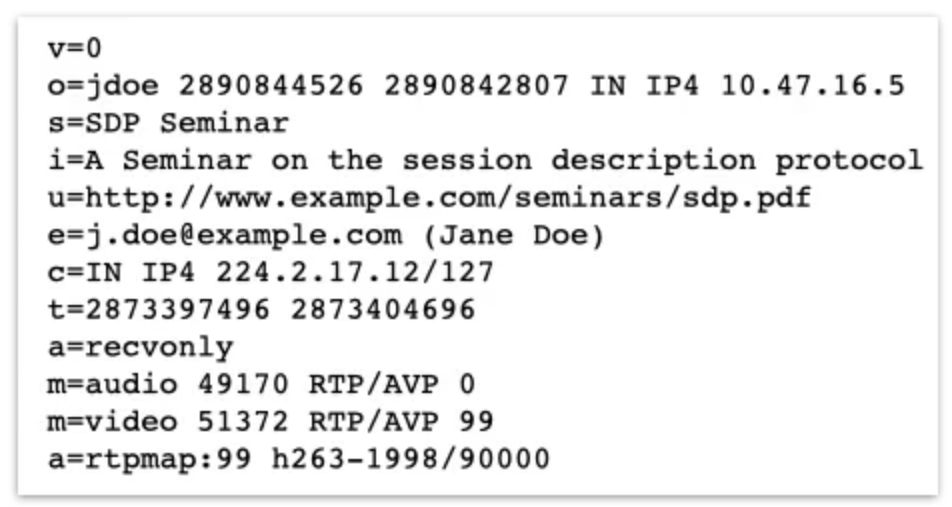 - it specifies the ports and some details of the video compression scheme, and so on.