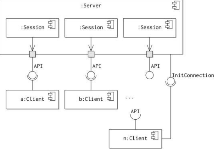 In a client-server system, there are two interfaces. The first interface is used by the client to indicate that it wishes to establish a new connection with the server in order to communicate. A separate session is established each time a client connects to the server. This arrangement allows the server to handle multiple connections from many clients simultaneously. The server exports a second type of interface, the main API. This interface specifies the messages that can be sent once a connection has been established between client and server. Note that the state of a connection is maintained by the session responsible for that connection.