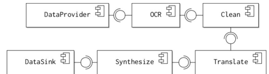 Consider, for example: An application for converting a scanned image of a page of book into audible speech in another language, as shown in the diagram.