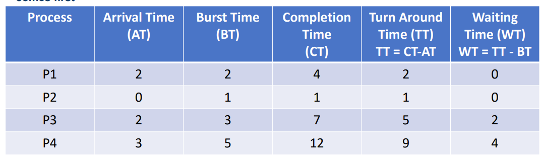 - If multiple processes have the same CPU burst time, use FCFS among them Details: