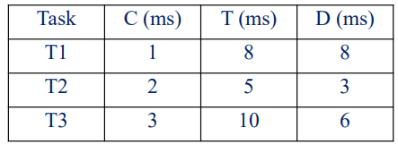 Typically for a task like this in a real time system you will be given a bunch of tasks as well as their Execution Time (C), Deadline (D) and their Task Period (T)