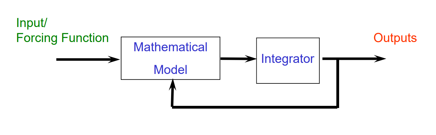 By evaluating the functions at specific time intervals throughout the simulation (normally less than a second length) we create a piecewise evaluation of the system that appears continuous with time