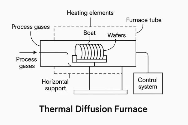 - Diffusion furnaces must maintain highly uniform temperature along the tube (±0.5°C or better) using multi-zone heating with independent PID control; ramp rates must be slow and controlled to prevent slip dislocations from thermal shock