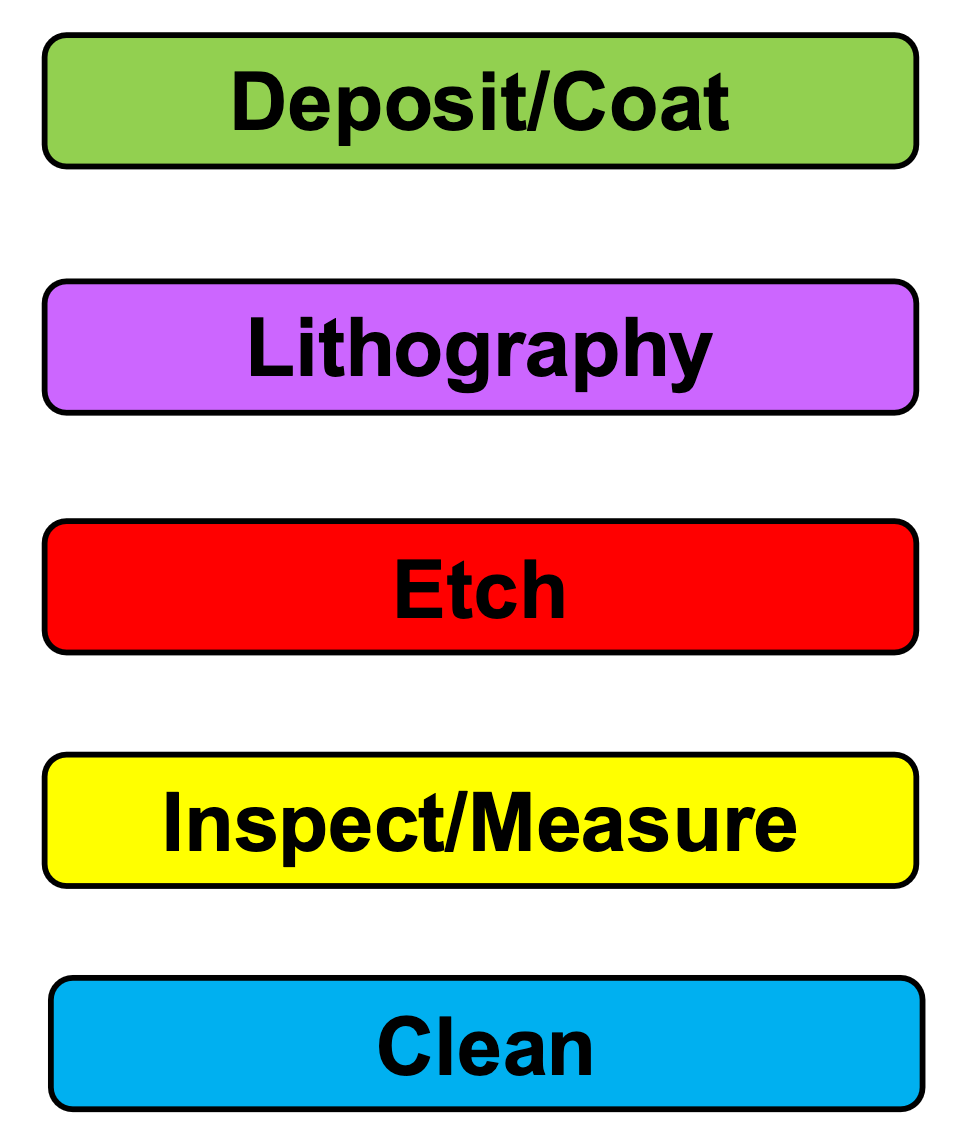 inspect - retrology Lithography Metal Contacts Pattern transfer is additive (deposit, coat, Epitaxy) or subtractive (dry or wet etch) Fabricating an LED