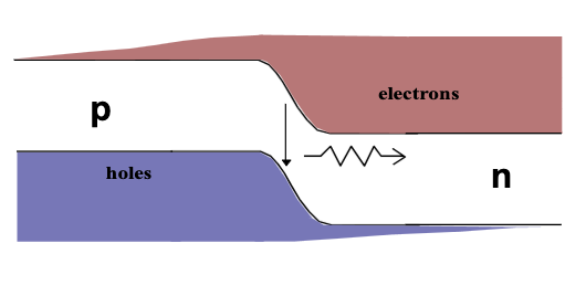 Uses a simple diode. Has poor confinement of holes and electrons, and poor confinement of photons.