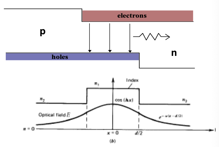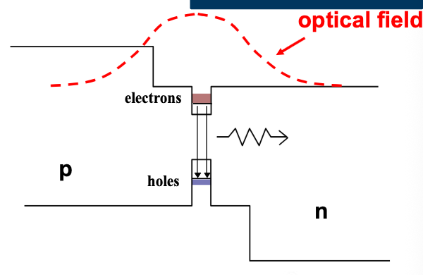 - For large numbers of QWs, carrier uniformity becomes a problem — wells closer to the p-side or n-side of the junction get pumped unevenly, so not all wells contribute equally to gain.