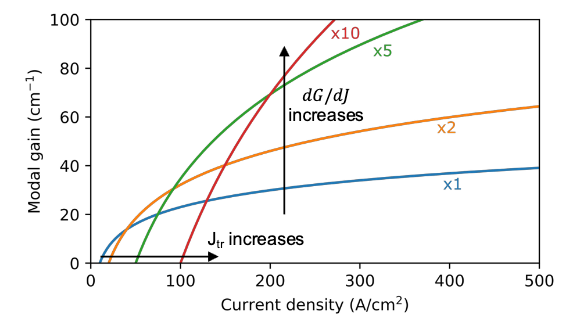 Multiple quantum well (MQW) lasers address this by stacking wells, giving total modal gain . Each additional well contributes its own to the total.