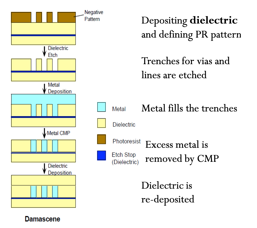 - Cu contaminates Si → Barriers are needed, Ta, TaN, TiN, TiW