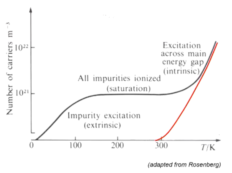 - Describe the difference between an intrinsic and extrinsic semiconductor. Sketch free carrier concentration versus temperature.