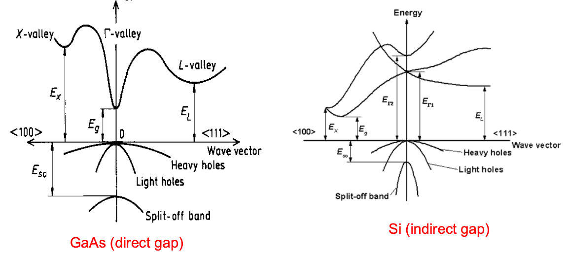 - What is the difference between a direct and indirect band gap semiconductor. Show why direct band gap semiconductors are more useful for light emitting devices.