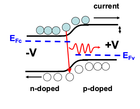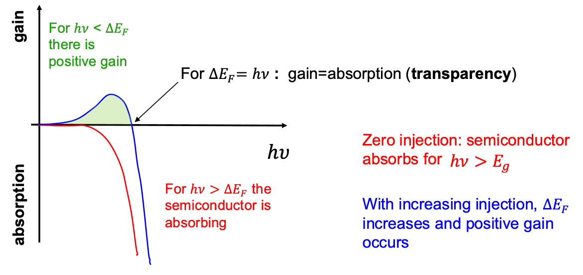 At low injection: therefore spontaneous emission dominates This is the basis for a LED At higher injection: This is the basis for optical gain