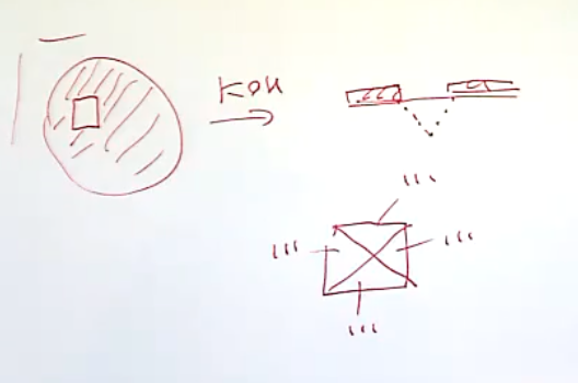 This has the effect that for square holes, we get inverted pyramids etched inwards:
