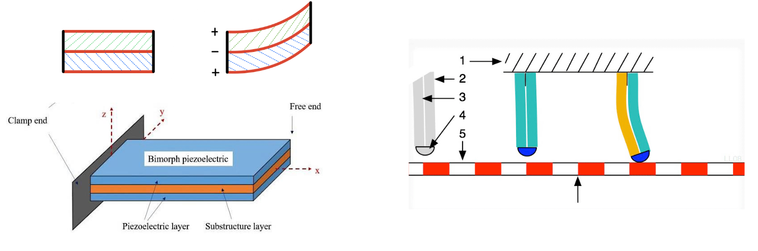 In sensing applications, bending the bimorph produces voltage which can for example be used to measure displacement or acceleration.