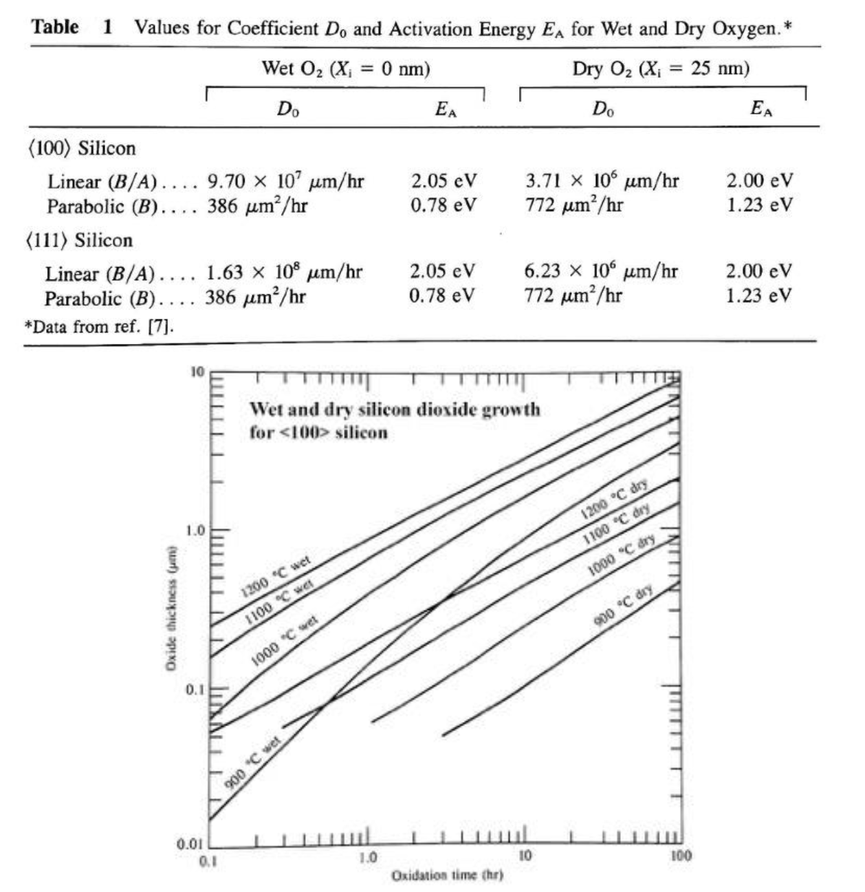 - (a) Time to grow 200 nm of SiO₂ on ⟨100⟩ Si at 1100°C in dry oxygen?